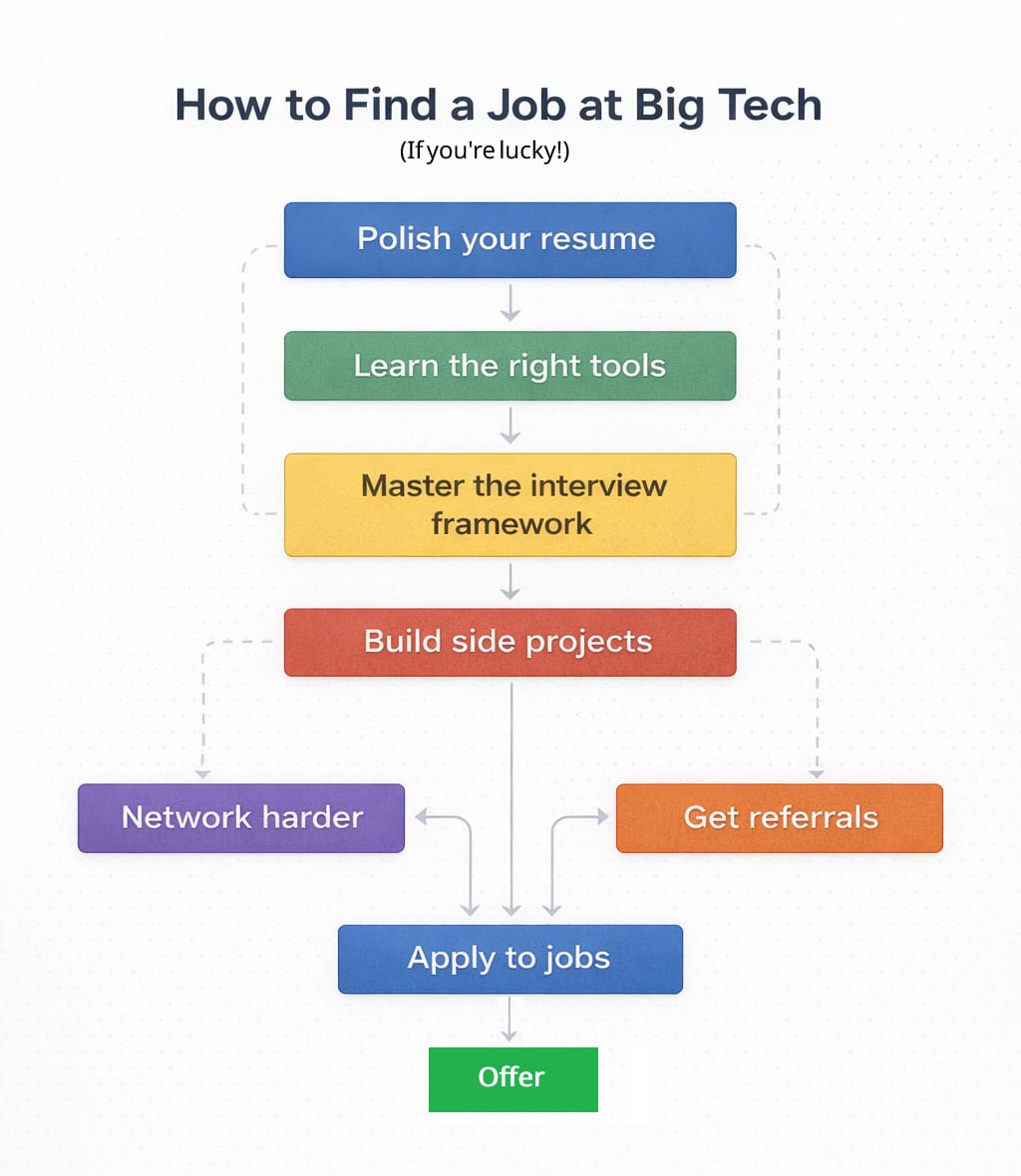 Breaking into Big Tech is not purely meritocratic. Timing, market conditions, and internal referrals influence outcomes. You cannot control all of those factors.